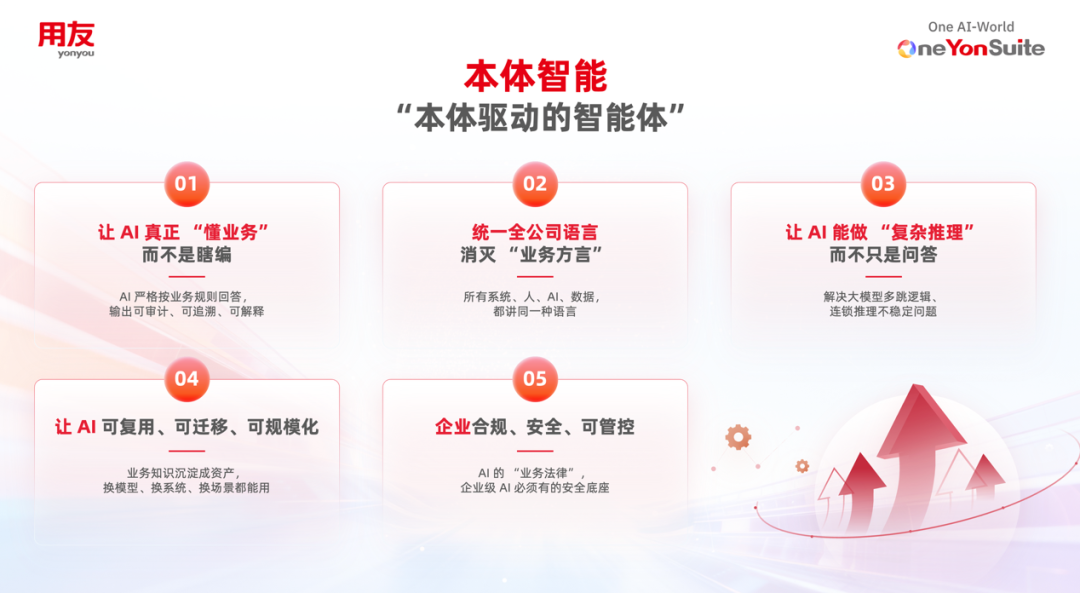 也正是在這樣的背景下,企業(yè)對AI的熱情與焦慮并存。許多管理者希望通過AI實(shí)現(xiàn)降本增效,但企業(yè)級AI的落地,絕非簡單接入一個大模型,更非追逐一時熱點(diǎn)。它是一項(xiàng)必須依托于工程化體系、業(yè)務(wù)規(guī)則和平臺能力的系統(tǒng)工程?;谟糜裏onSuite的長期實(shí)踐,我們得出一個核心判斷:要讓AI真正跨越企業(yè)應(yīng)用的“最后一公里”,關(guān)鍵不在于讓它更“能說會道”,而在于讓它真正懂業(yè)務(wù)、守規(guī)則、能協(xié)同。而實(shí)現(xiàn)這一目標(biāo)的核心抓手,正是本體驅(qū)動的智能體(Ontology-driven Agent)。