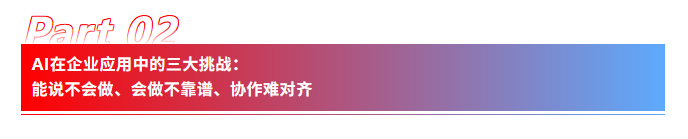 但必須清醒地認(rèn)識到,C端與B端(企業(yè)端)的應(yīng)用要求截然不同。C端應(yīng)用容錯率較高,而一旦進(jìn)入企業(yè)服務(wù)場景,問題的性質(zhì)就發(fā)生了根本改變。在企業(yè)中,財務(wù)賬目差一分錢都不行,生產(chǎn)決策錯一步就可能造成嚴(yán)重后果。正因如此,企業(yè)應(yīng)用AI的核心命題,從來不是“能不能用”,而是誰能用得更安全、更可控、更有規(guī)則、更有邊界。